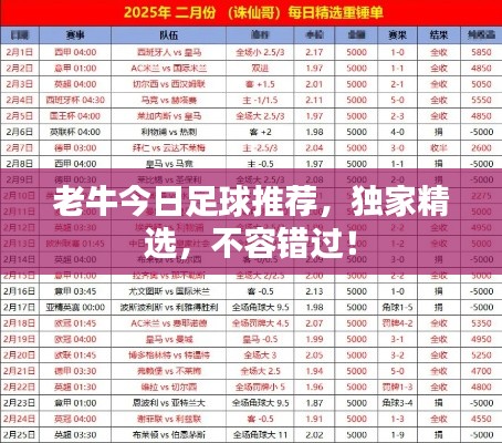 老牛今日足球推荐,独家精选,不容错过!